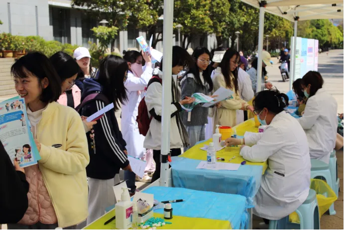 活动前期,校医院通过问卷星小程序开启线上宣传,发布病毒性肝炎防治知识科普活动预告及自愿免费检测报名通道,提前让同学们了解病毒性肝炎防治知识、知晓活动福利,共有近3000名师生参与了线上预约活动,为活动顺利开展打下良好基础。